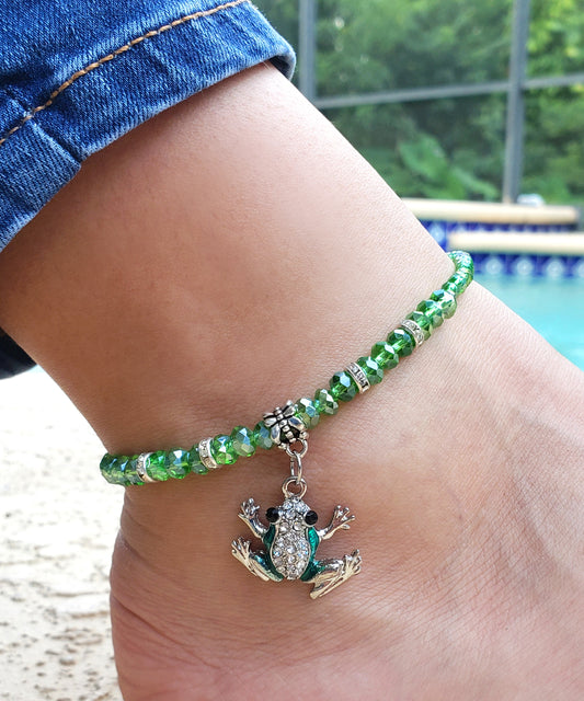 BESHEEK | Tree Frog Green Crystal Glass Artisan Beaded Anklet