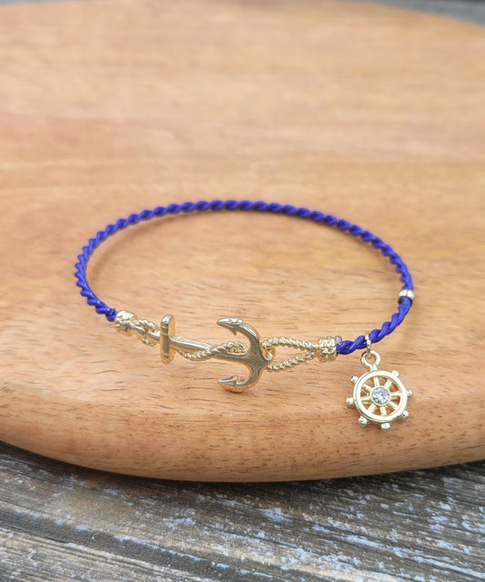 BESHEEK | Goldtone and Blue Anchor and Hook Clasp Bracelet