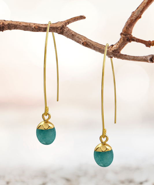 BESHEEK | Goldtone Long Fish Hook Jade Oval Dangle Earrings