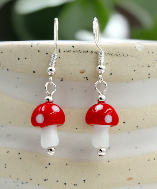 BESHEEK | Glass Red and White Small Mushroom Sterling Silver Earrings