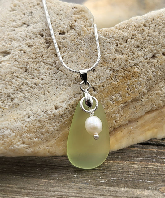 BESHEEK | Mint Green Seaglass Freshwater Pearl Necklace