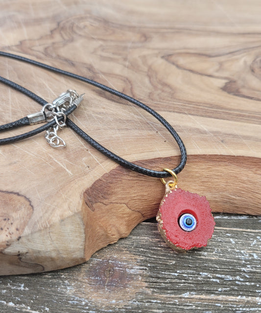 BESHEEK | Gold-edged Red Evil Eye Resin Pendant Necklace