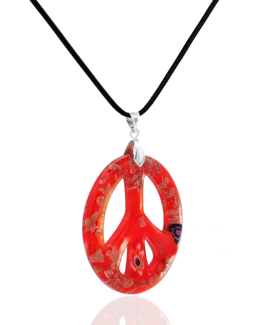 BESHEEK | Handmade Murano Inspired Red Glass Peace Sign Necklace
