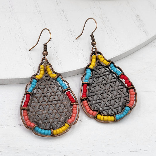 Antiqued Bronze Mayan Beaded Teardrop Earrings