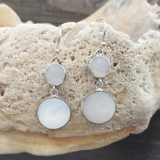 Sterling Silver Mother of Pearl Double Drop Dangle Earrings