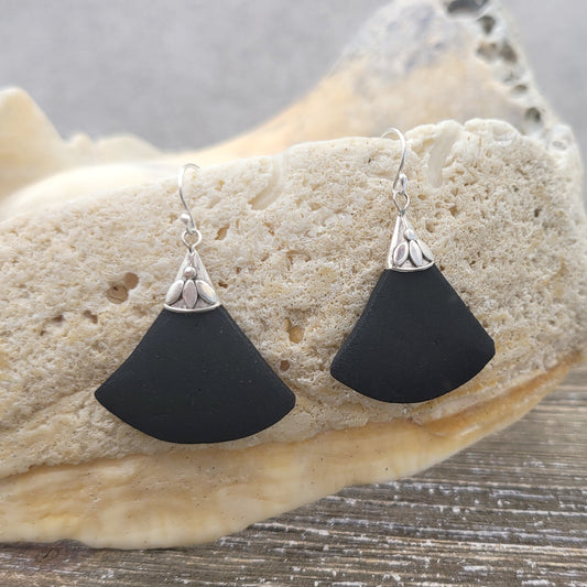 Sterling Silver and Lava Stone Fan Drop Elegant Earrings