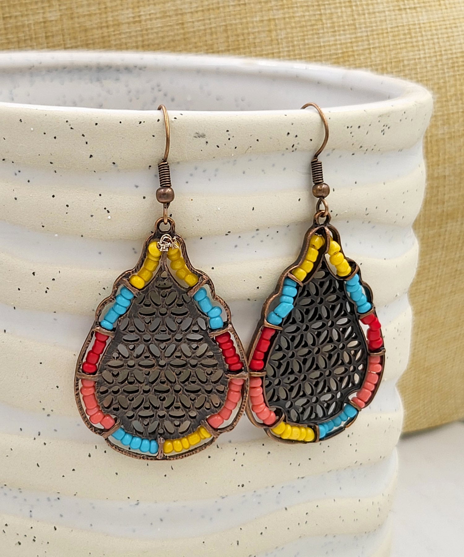 Antiqued Bronze Mayan Beaded Teardrop Earrings