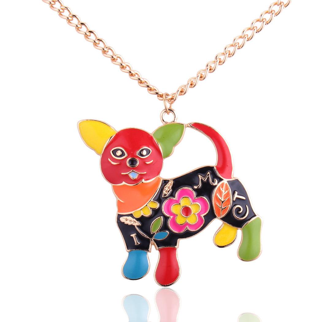 The pendant features a colorful cute dog design, that is sure to bring a smile to your face. It is crafted from stainless steel and hangs from a chain necklace. The necklace is perfect for any occasion, and a perfect gift for any dog-lover in your life.