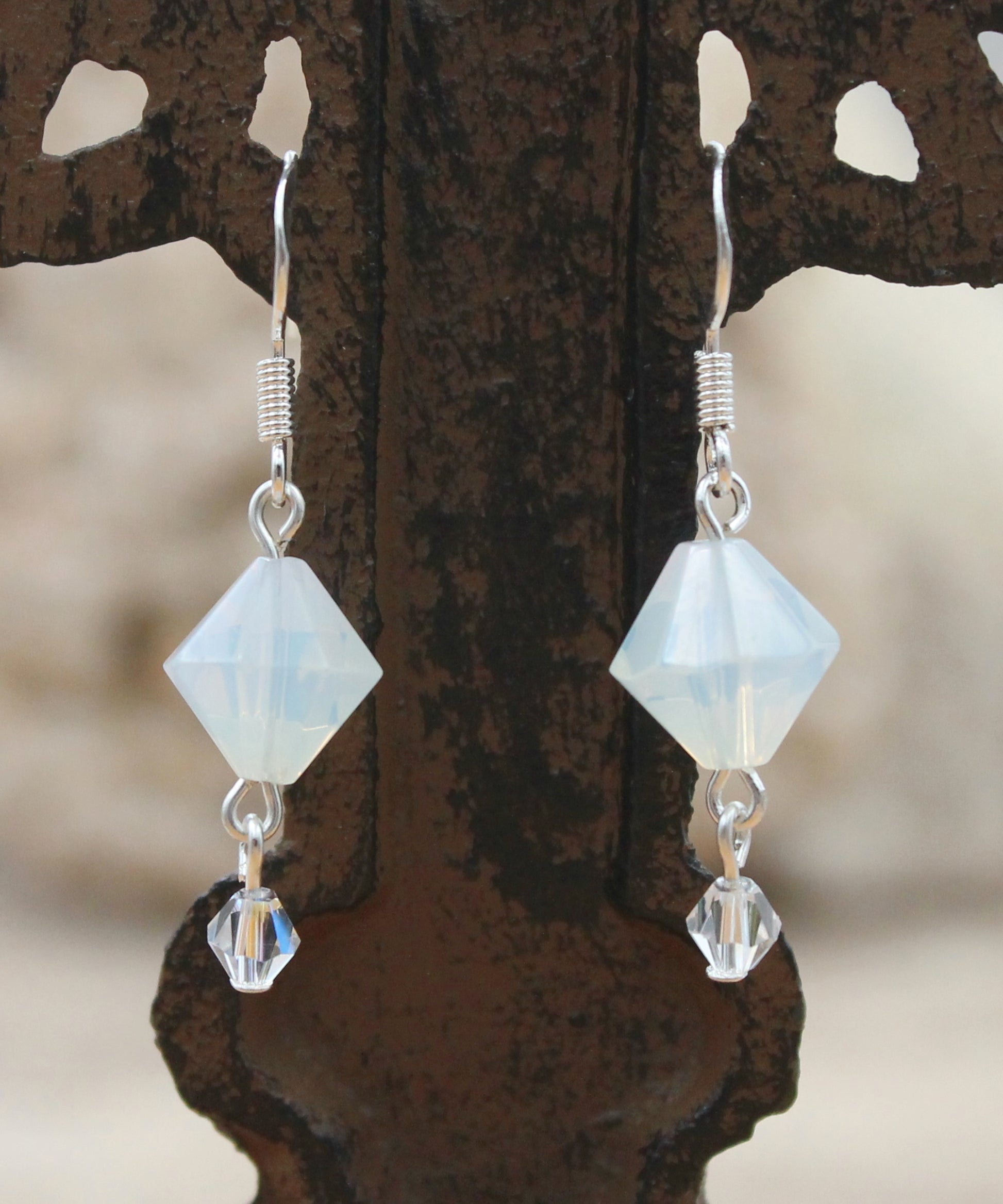 BESHEEK Sterling Silver and Opal Crystal Double BiCone Dangle Earrings | Hypoallergenic Boho Beach Gala Wedding Style Fashion Earrings