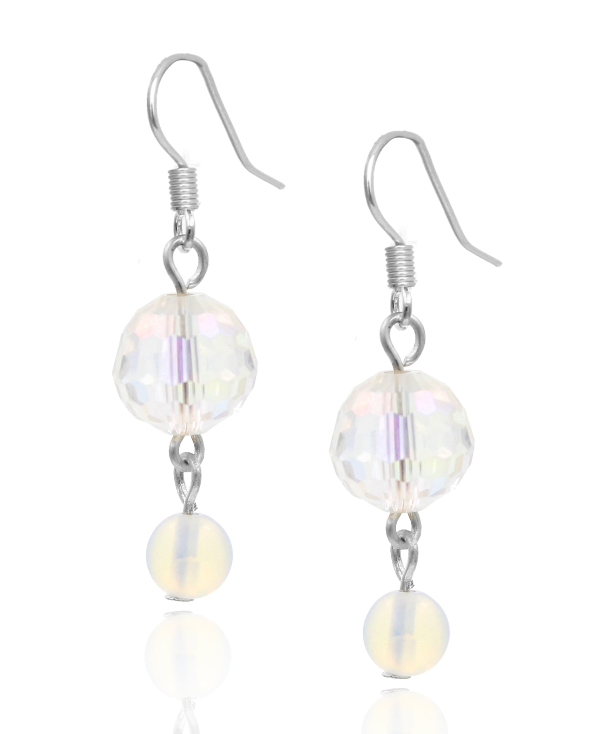 BESHEEK Sterling Silver and Opal Crystal Double Round Dangle Earrings | Hypoallergenic Boho Beach Gala Wedding Style Fashion Earrings