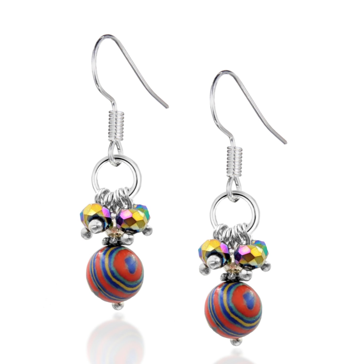 BESHEEK Sterling Silver and Rainbow Calsilica Stone Earrings | Hypoallergenic Boho Beach Gala Wedding Style Fashion Earrings