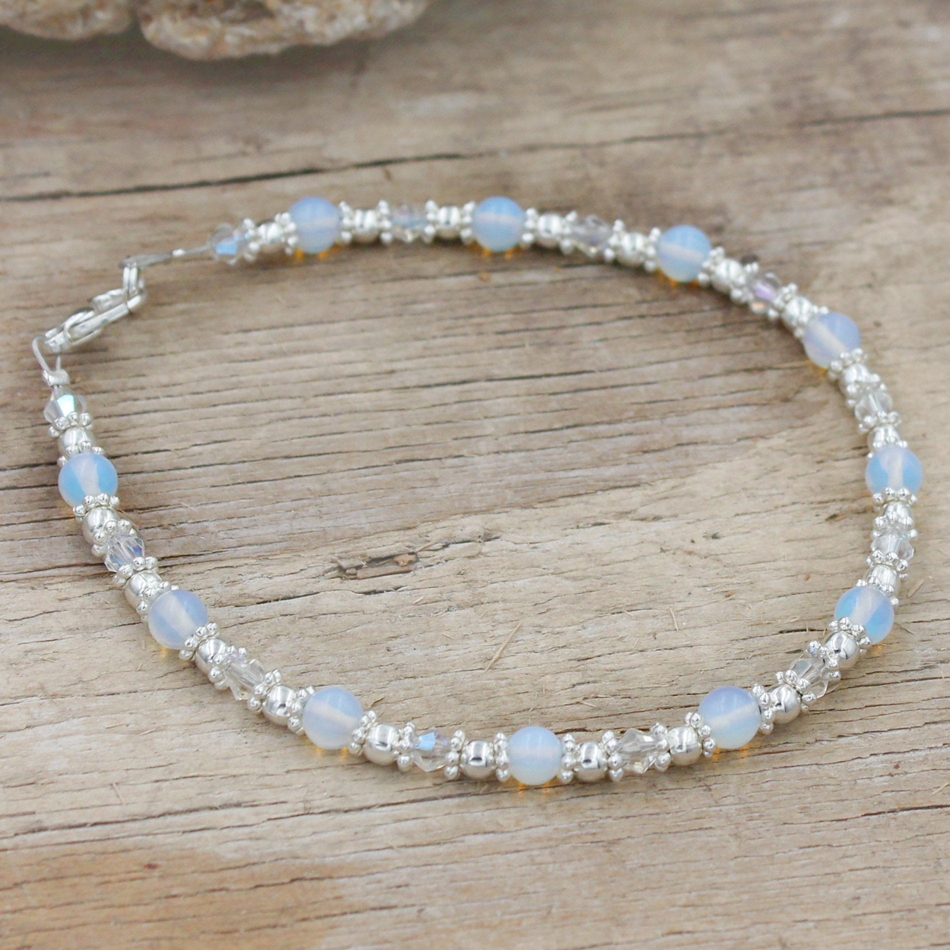 BESHEEK Clear AB Bali Style Moonstone and Crystal Braclet| Handmade Hypoallergenic Boho Beach Gala Wedding Style Jewelry