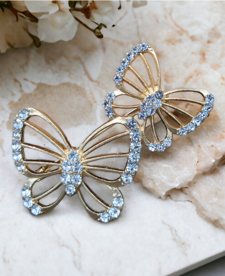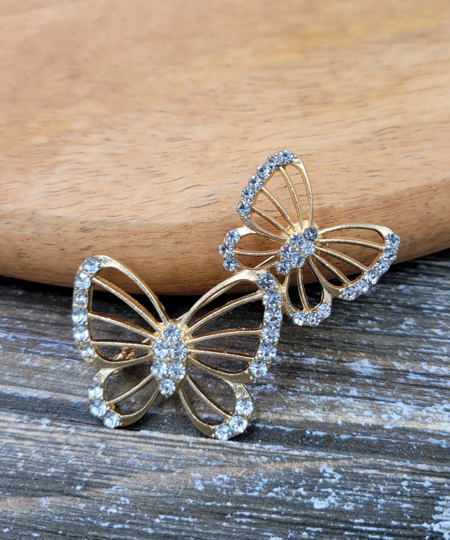This beautiful brooch features a butterfly design with intricate details. It is made of high quality materials and has a lovely sparkling finish. The back of the brooch has a secure pin closure, making it perfect for wearing on your favorite jacket, blouse, or accessory. The design is classic and timeless and is sure to bring a touch of elegance to any outfit.