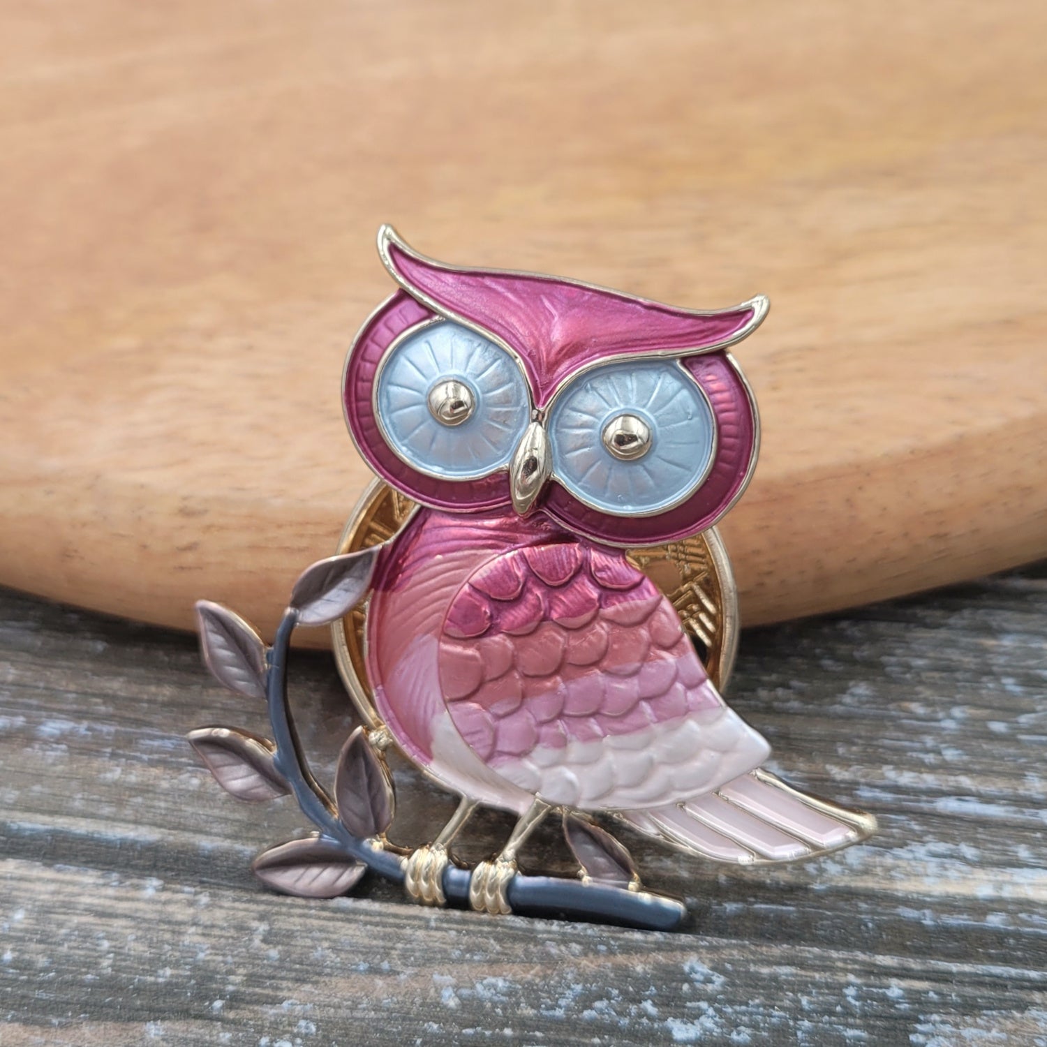 BESHEEK Goldtone PInk Owl Magnetic Professional Artisan Brooch Pin | Handmade Hypoallergenic Office, Suit, Networking Style Jewelry