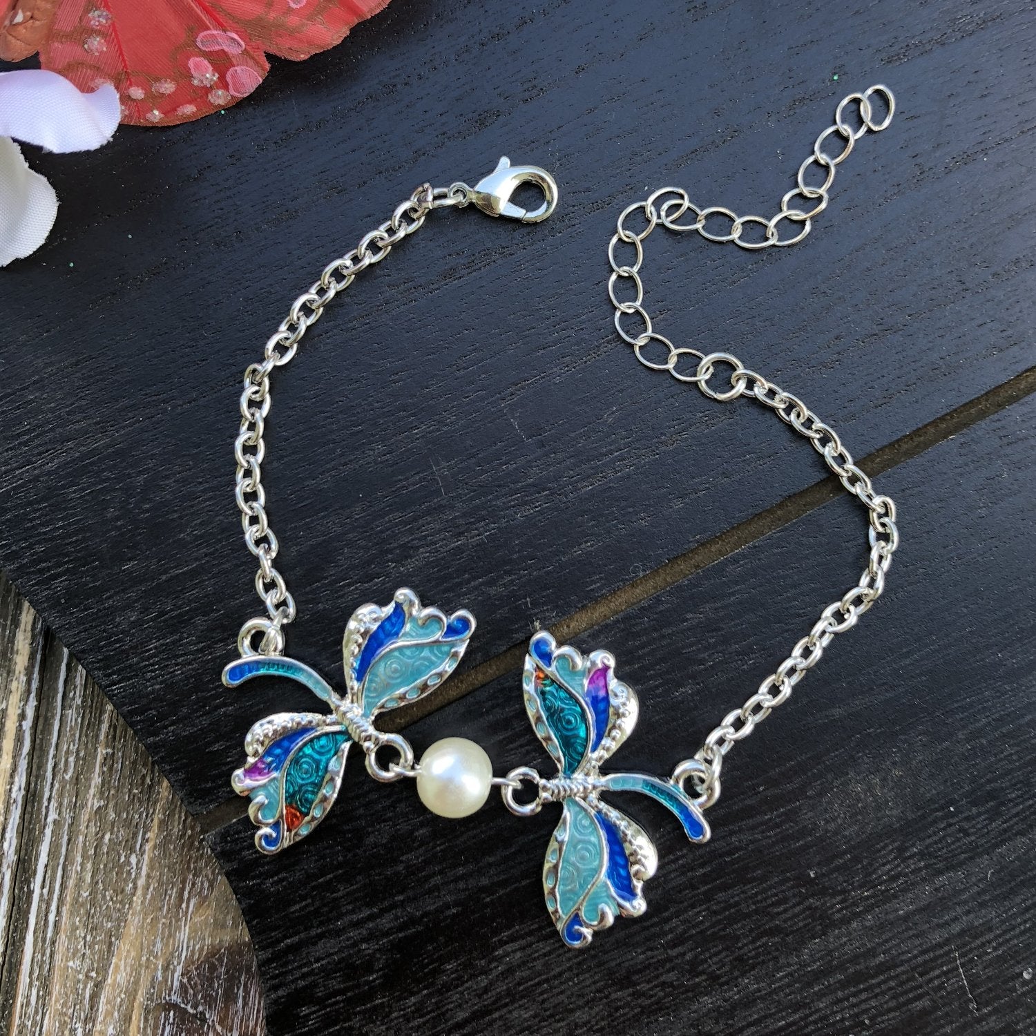 Make a statement with this elegant dragonfly bracelet from BeSheek Jewelry! Crafted with delicate opalescent wings and a glimmering link chain, this one-of-a-kind piece is a stunning representation of the dragonfly's adaptability, magic, and reminder to live life to the fullest. Show off your own style and happiness with this gorgeous bracelet, and make the perfect present for someone who appreciates the beauty of dragonflies.