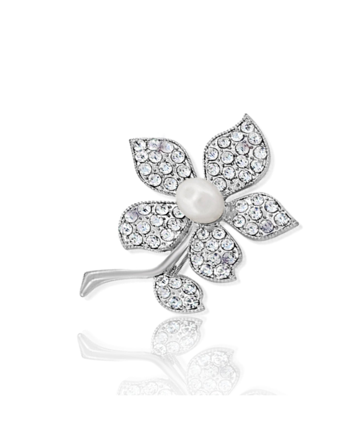 BESHEEK | Silvertone Rhinestone Flower Brooch Pin