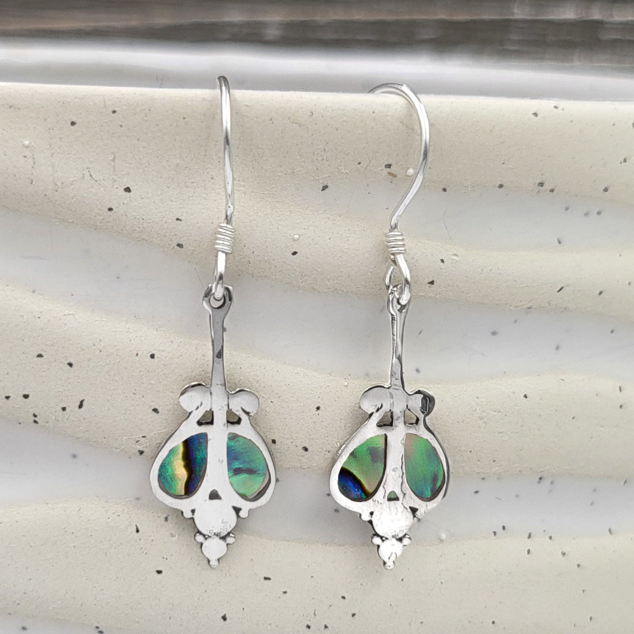 Sterling Silver and Abalone Shell Filigree Dangle Earrings