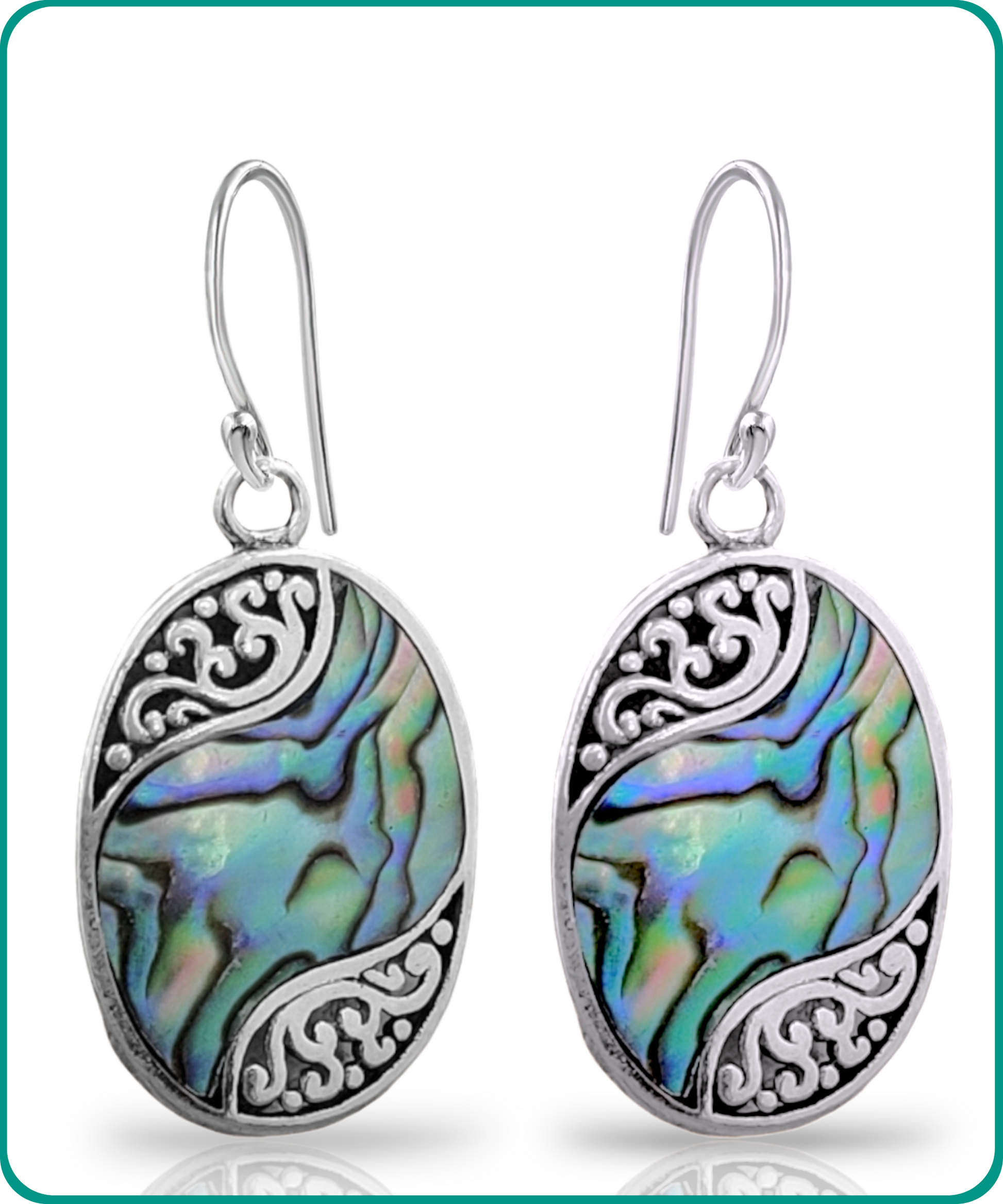 Sterling Silver Wave Oval Drop Abalone Earrings