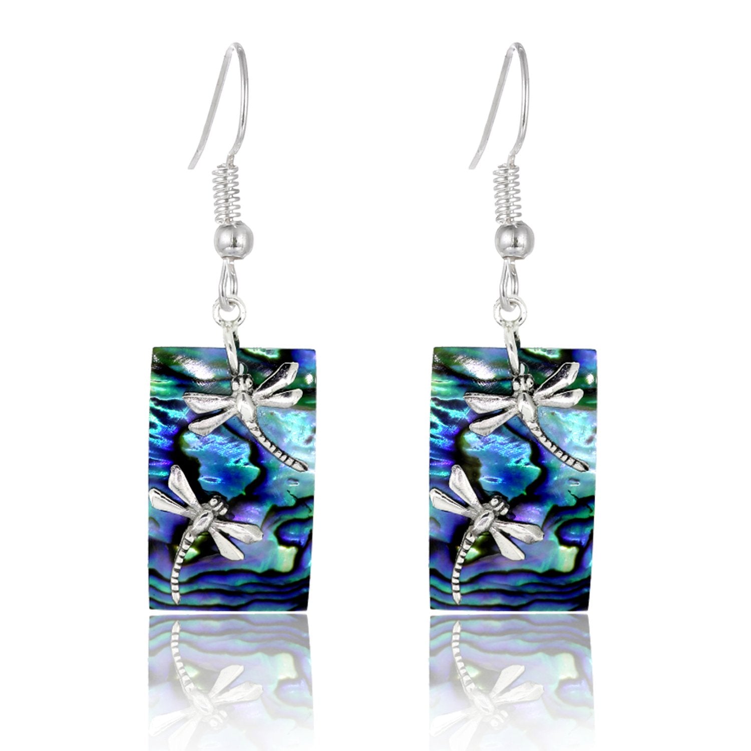 BESHEEK Sterling Silver and Paua Shell Dragonflies Drop Earrings | Handmade Hypoallergenic Boho Beach Gala Wedding Style Sterling Earrings